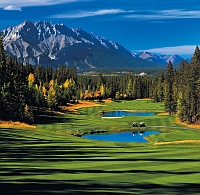 18th Hole, Silvertip Resort: The par-4 finishing hole sums up your Silvertip experience, with tees sitting at the highest point on the golf course. A dogleg-left orientation drops dramatically to the Timbers Clubhouse below, allowing both golfers and diners on the outdoor patio with a view of great golf shots, the breathless Bow Valley and towering peaks of the Rocky Mountains. An online webcamgives travelers a wide-angle view of the hole each day.